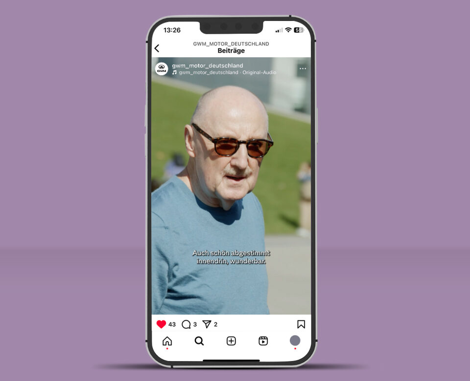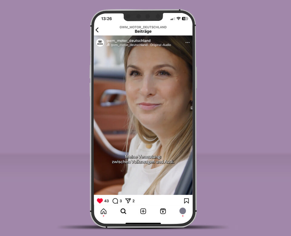 Wir wollten wissen: Stimmt das Design? Stimmt die Verarbeitung? Stimmt der Komfort? Und nicht: Stimmt die Marke? Deshalb haben wir den ORA 07 in die Düsseldorfer City gestellt, alle Logos entfernt und Passanten in das viertürige, vollelektrische Coupé eingeladen – zur ausführlichen Entdeckung. Die Reaktionen haben wir gefilmt und daraus ein erstaunliches Stück Empfehlungswerbung gemacht, aufgearbeitet für die Landingpage und für Social Media.