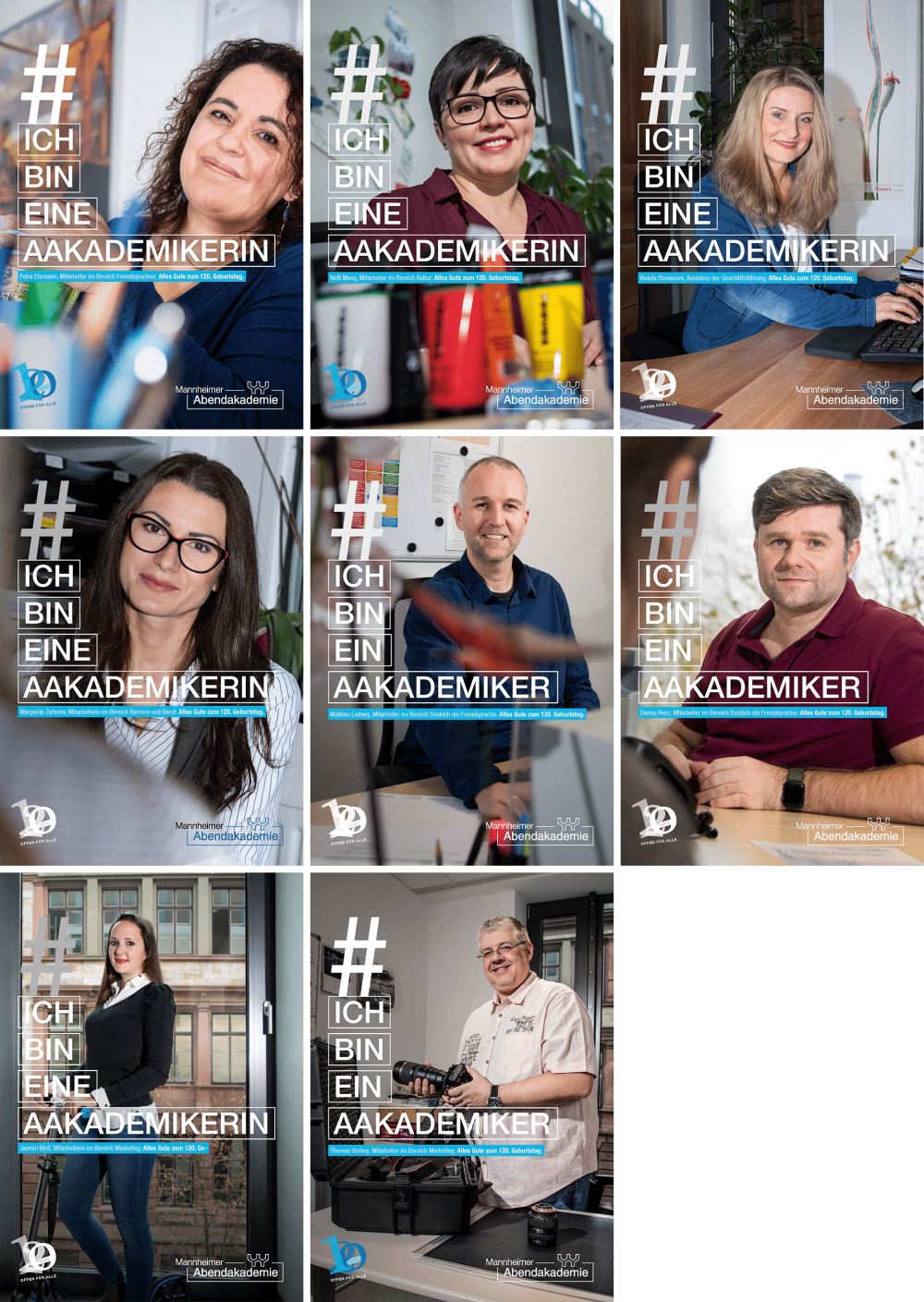 Seit 120 Jahren garantiert die Mannheimer Abendakademie den Bürgern freien Zugang zu ihrem Bildungsprogramm. Im Jubiläumsjahr feiern wir genau das: die Bildungsmöglichkeit, unabhängig von Status, Religion, Staatszugehörigkeit und Geschlecht. Die Kampagnenidee „Ich bin ein AAkademiker“ visualisiert dies, sie lebt von ihrer Heterogenität. Wir sorgen dafür, dass Menschen aus allen Bevölkerungsschichten, Prominente wie Nichtprominente, Vertreter aller Kursrichtungen sich zur Abendakademie und zu ihren Grundsätzen bekennen. Wir zeigen, wie erfolgreich die Abendakademie darin ist, Bildung zu demokratisieren und allen zu ermöglichen. Wir bieten den Stoff für Reibung, Bekenntnis und Forderung: das AAkademische Manifest.