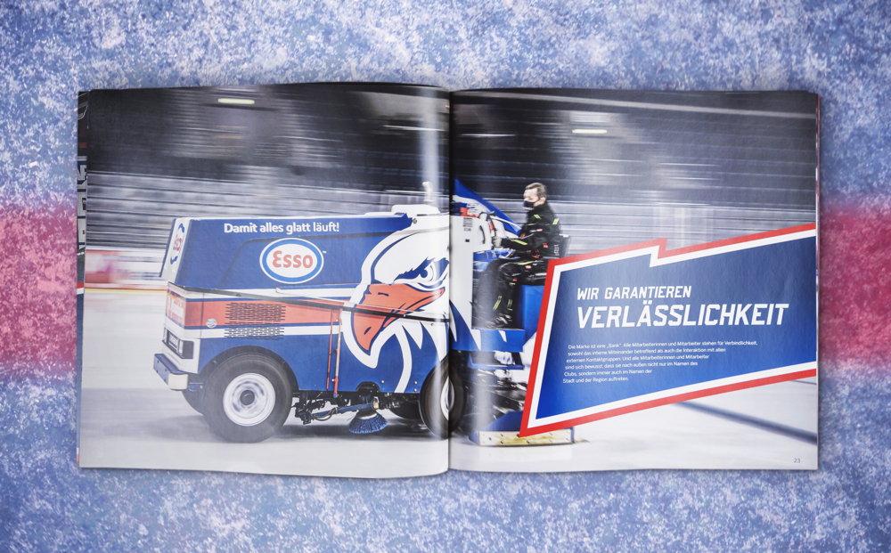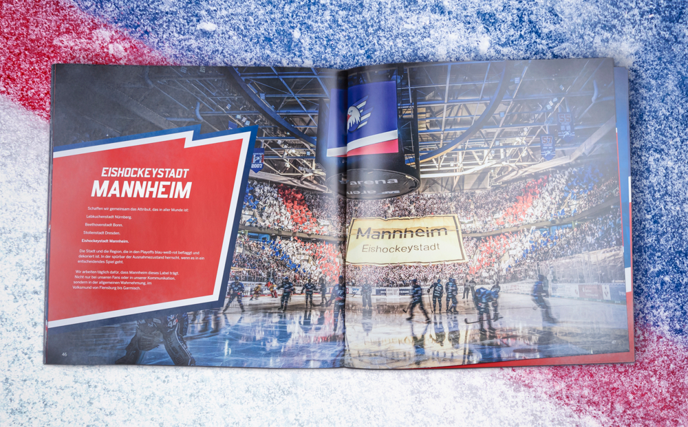 2018: das Jahr der kompletten Neuausrichtung der Adler Mannheim. Nicht nur sportlich, sondern in jeder Hinsicht. Dafür brauchte es die große, gemeinsame Basis. Einen klaren Werte-Kanon, der Grundtugenden des Mannheimer Eishockeys wieder betont und Vertrauen zurückgewinnt. Eine Vision, wohin sich die Marke entwickeln soll. Kurz: Es brauchte eine fundierte Markenstrategie. Entwickelt gemeinsam mit dem internen Team und ausgewählten externen Partnern. Umgesetzt in einem neuen Leitbild und dem Markenbuch „Für Mannheim“.