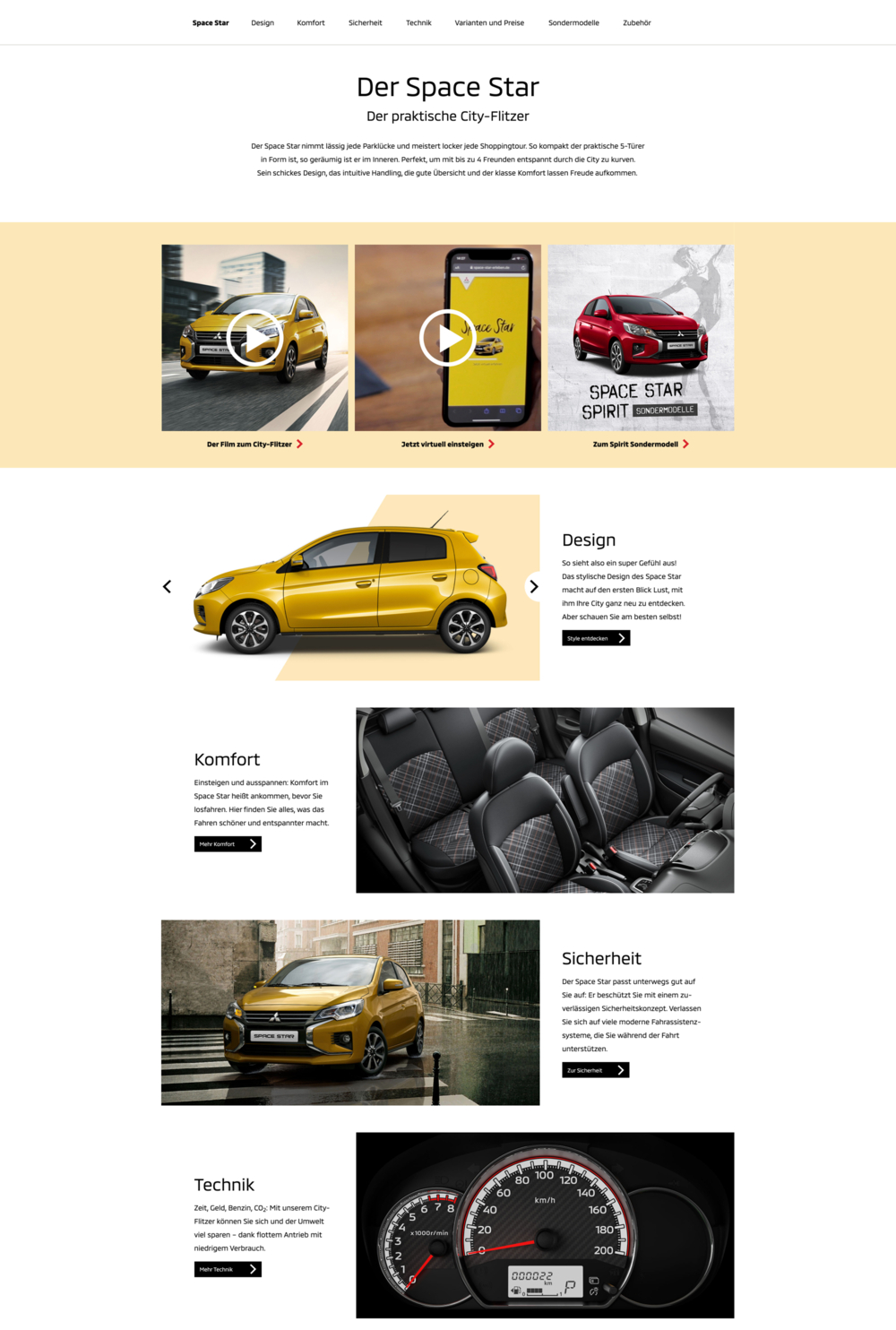 Internetseiten sind schnelllebig. Deshalb sollten die Modellseiten auf mitsubishi-motors.de optisch und technisch auf den neusten Stand gebracht werden, die Modelle danach intuitiver und schneller entdeckt werden können. Mehr Interaktion, mehr Emotion, bessere Usability, weniger Text, größere Bilder – der Besuch der Website soll ein Erlebnis sein. Mit diesen Zielen gingen wir in die Konzeption und Kreation des neuen Modellbereichs und brachten ihn auf den neusten Stand. Dank eines flexiblen Baukastensystems mit nur wenigen Modulen können jetzt zudem ganz einfach unterschiedliche Seitenlayouts erstellt werden. Laut Psyma-Studie sind die Modellseiten in allen Bereich signifikant besser geworden, bei der Ladeperformance/-schnelligkeit sogar Branchen-Benchmark – vor gewissen Porsches.